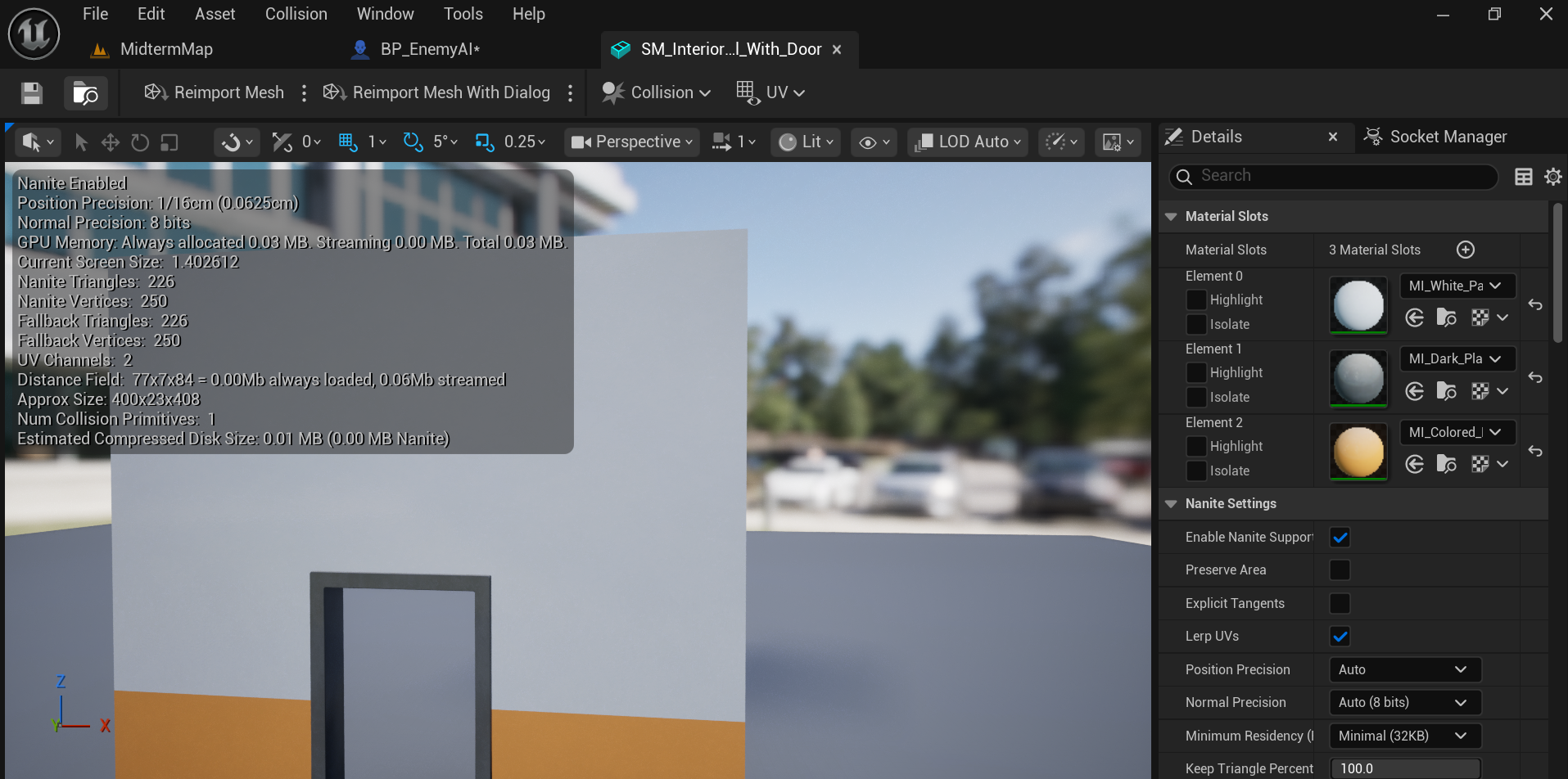 -Throughout the playtesting phase I fixed several collision issues by focusing on the collision of each individual asset utilized in the project. One of the examples of the issues I faced was the collision of the stairs and the collision of the doorframe to allow the player into the next playable area.